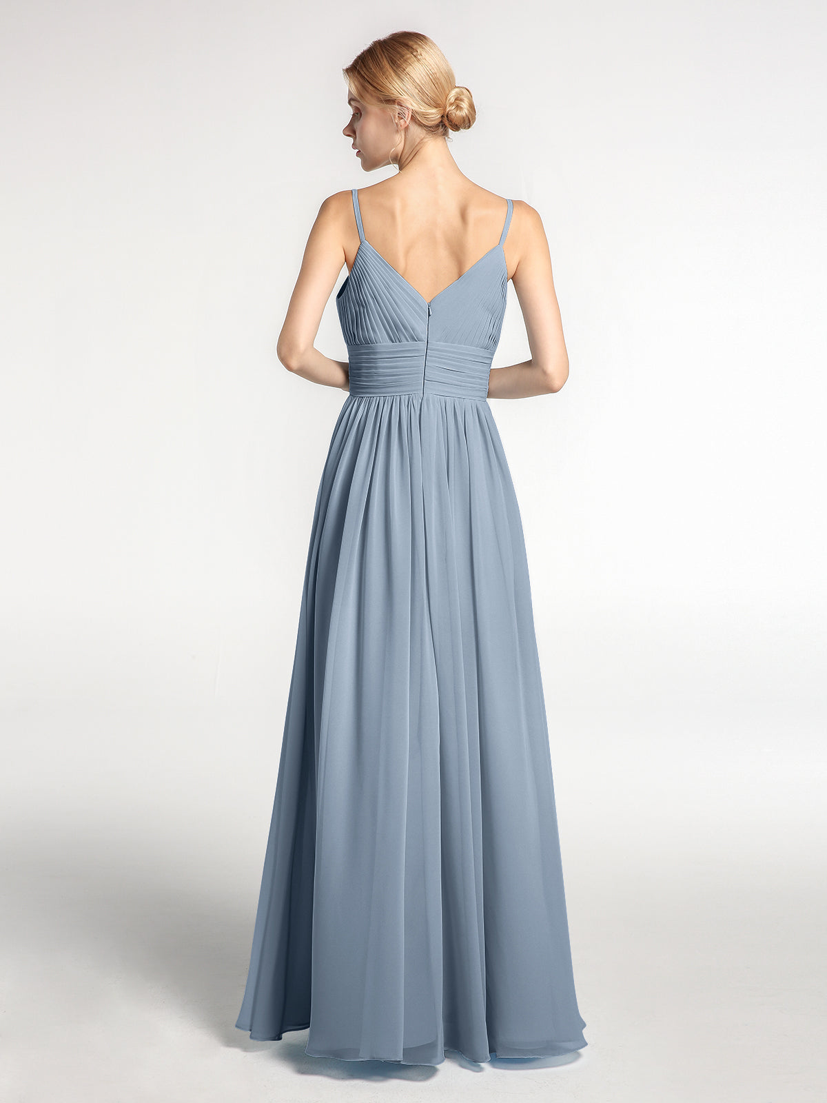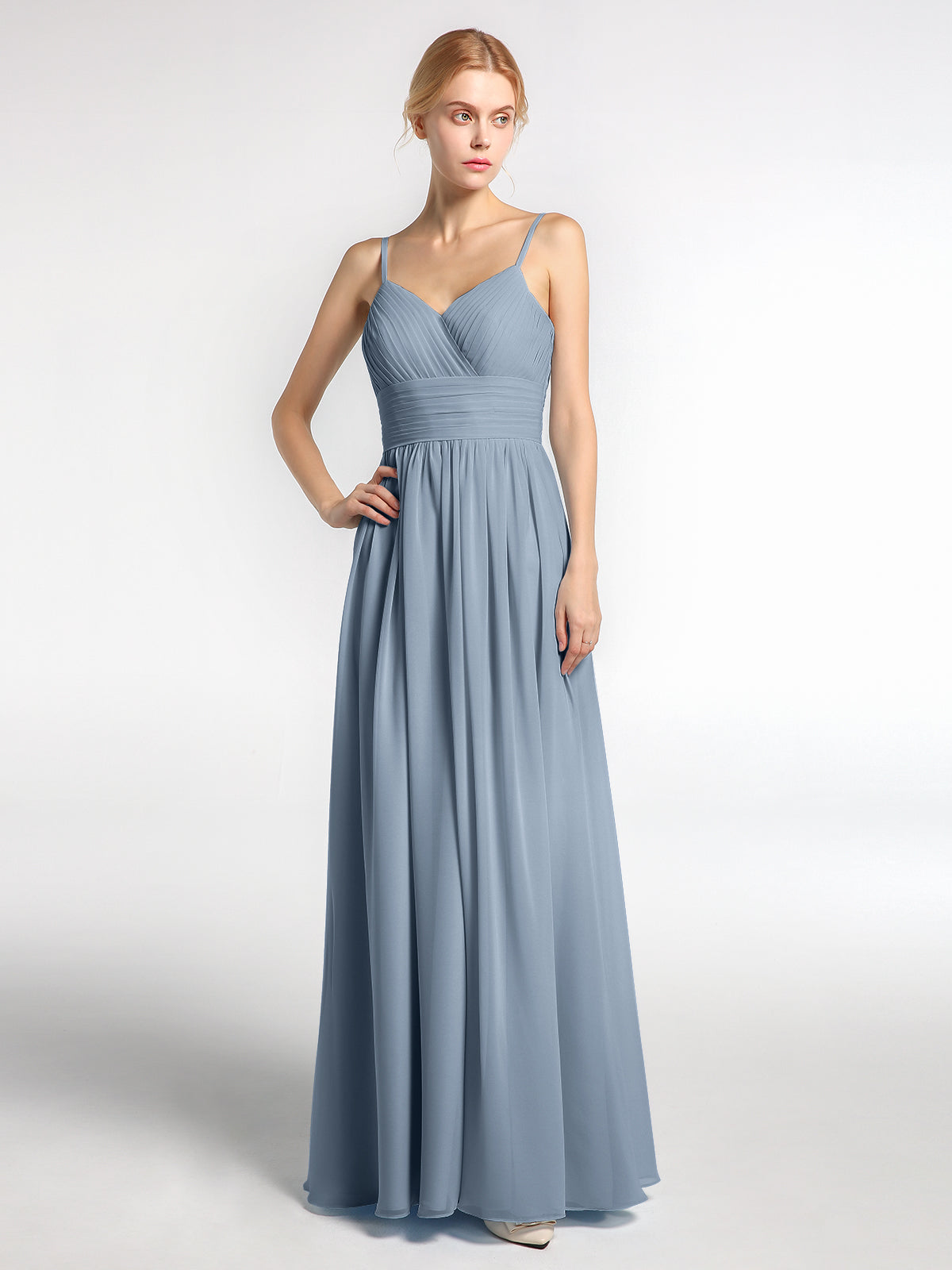 Spaghestti Strap Chiffon Maxi Gowns Dusty Blue