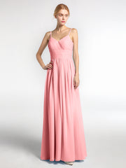 Spaghestti Strap Chiffon Maxi Gowns Flamingo