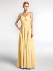 Spaghestti Strap Chiffon Maxi Gowns Gold