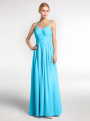 Spaghestti Strap Chiffon Maxi Gowns Pool