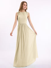 Chiffon and Lace Open Back Full Length Dress Champagne