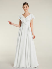 V neck Chiffon Dresses with Cap Sleeves Ivory Plus Size