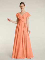 V neck Chiffon Dresses with Cap Sleeves Papaya Plus Size