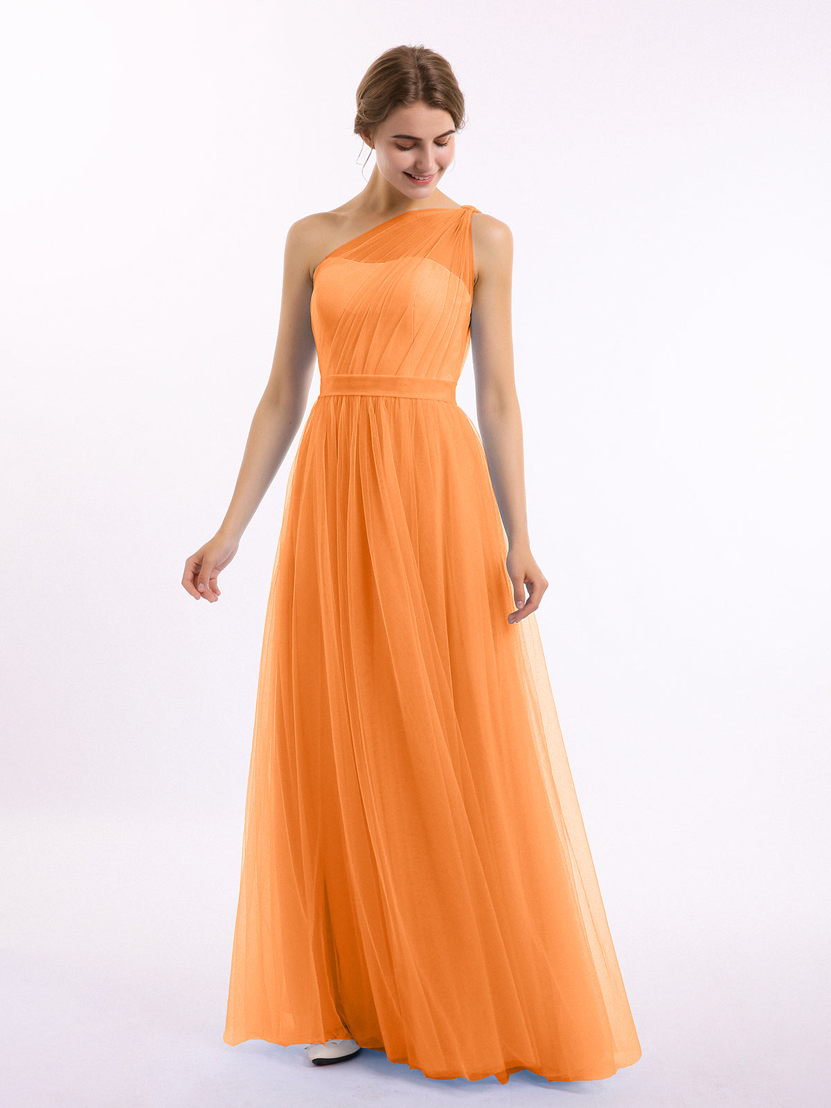 One Shoulder Mesh Wedding Party Bridesmaid Gown Orange
