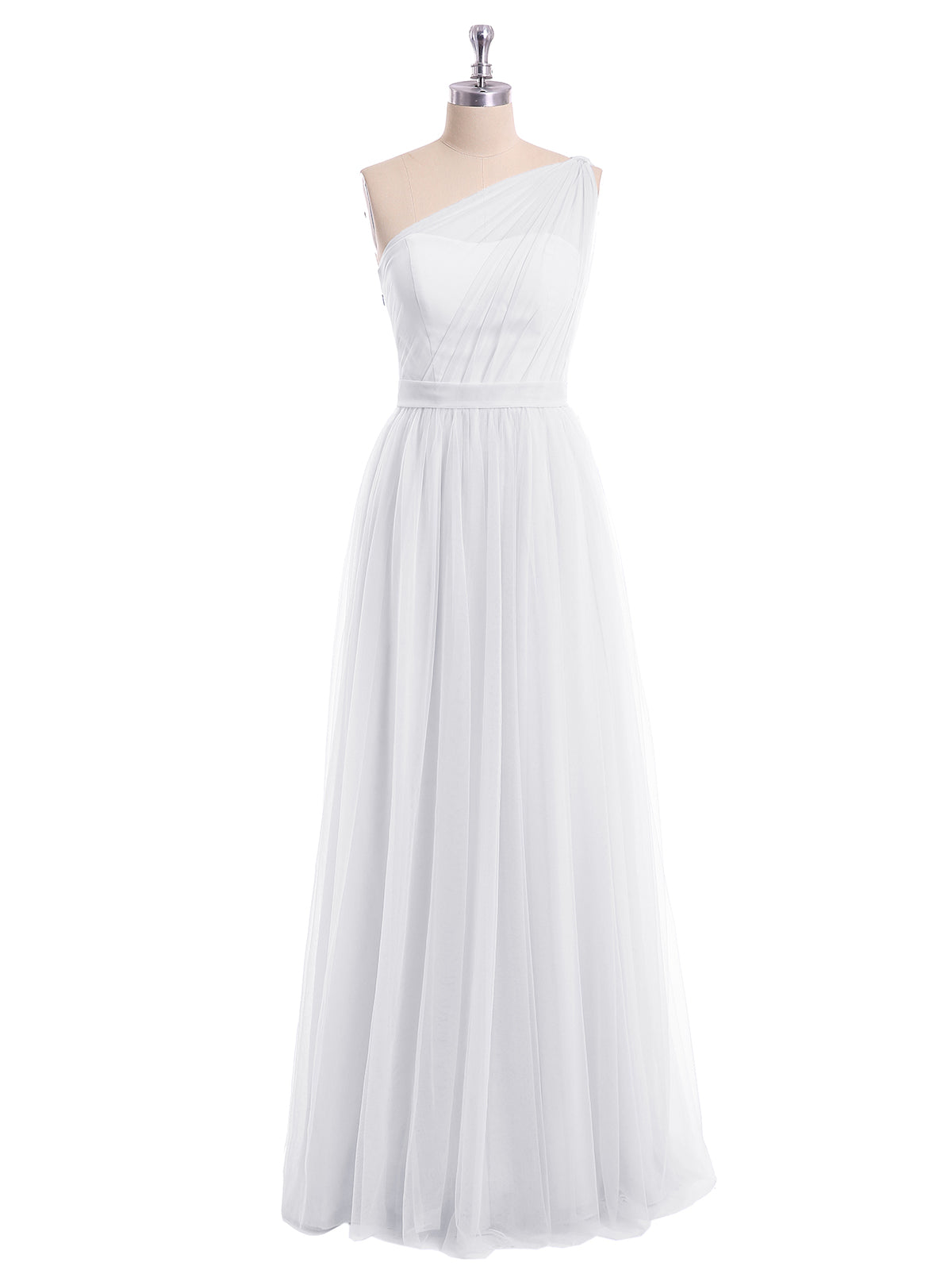 One Shoulder Mesh Wedding Party Bridesmaid Gown White