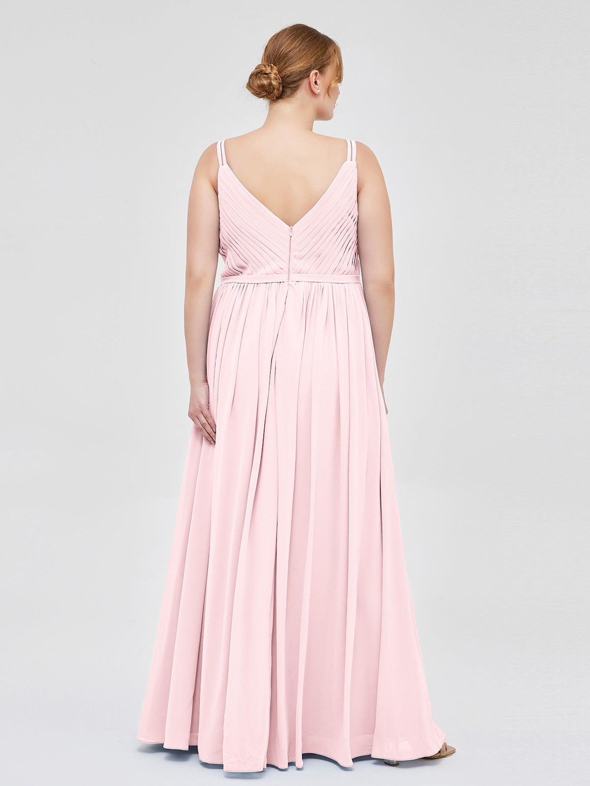 Double Strap Chiffon Bridesmaid Dresses Blushing Pink Plus Size
