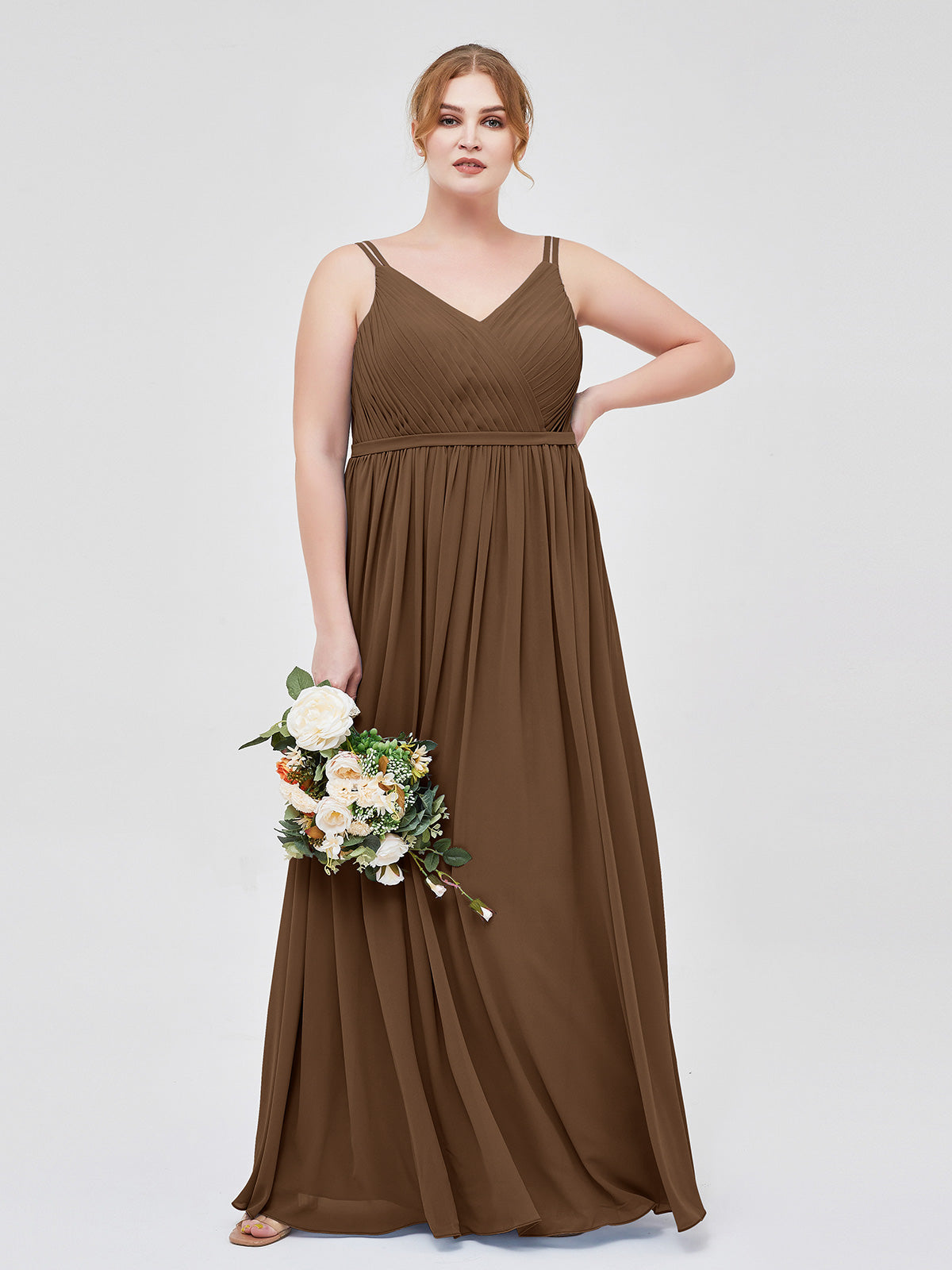 Double Strap Chiffon Bridesmaid Dresses Brown Plus Size