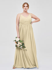 Double Strap Chiffon Bridesmaid Dresses Champagne Plus Size