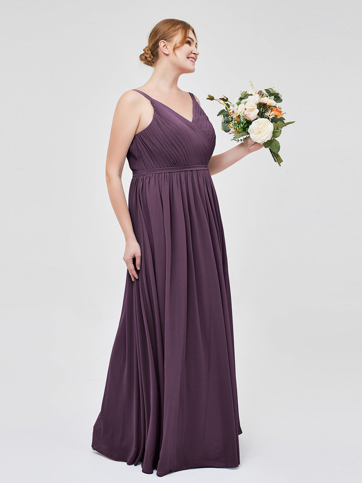 Double Strap Chiffon Bridesmaid Dresses Plum Plus Size