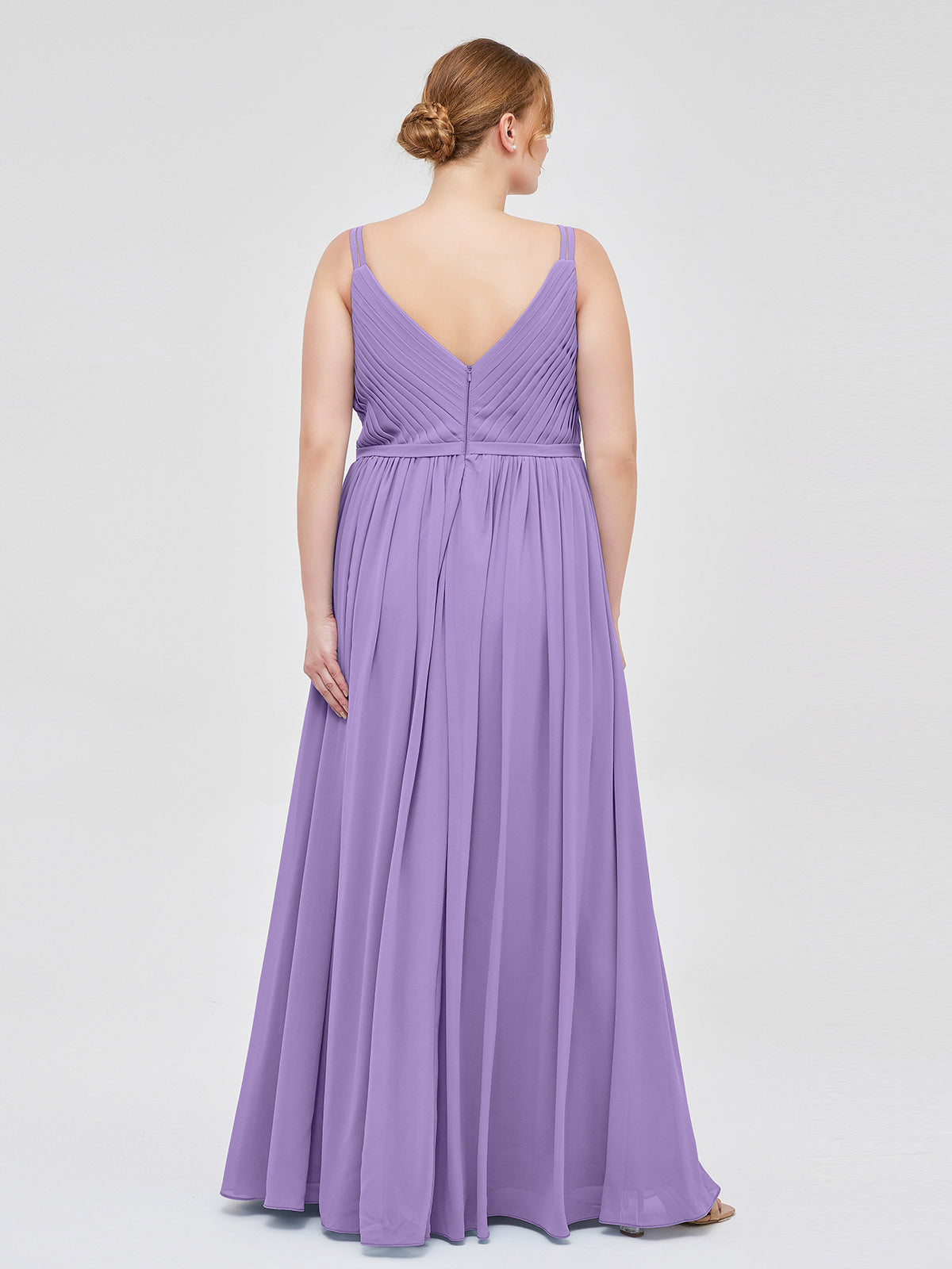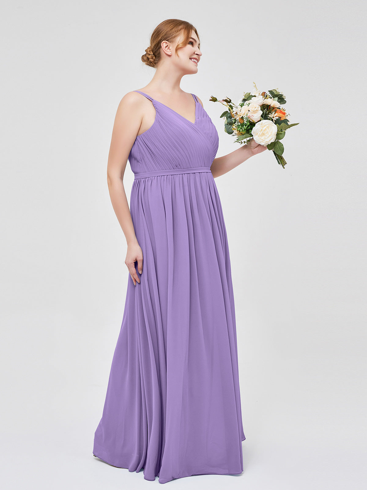 • It is a bridesmaids dress with an A-line cut with a pleated bodice in simple chiffon.