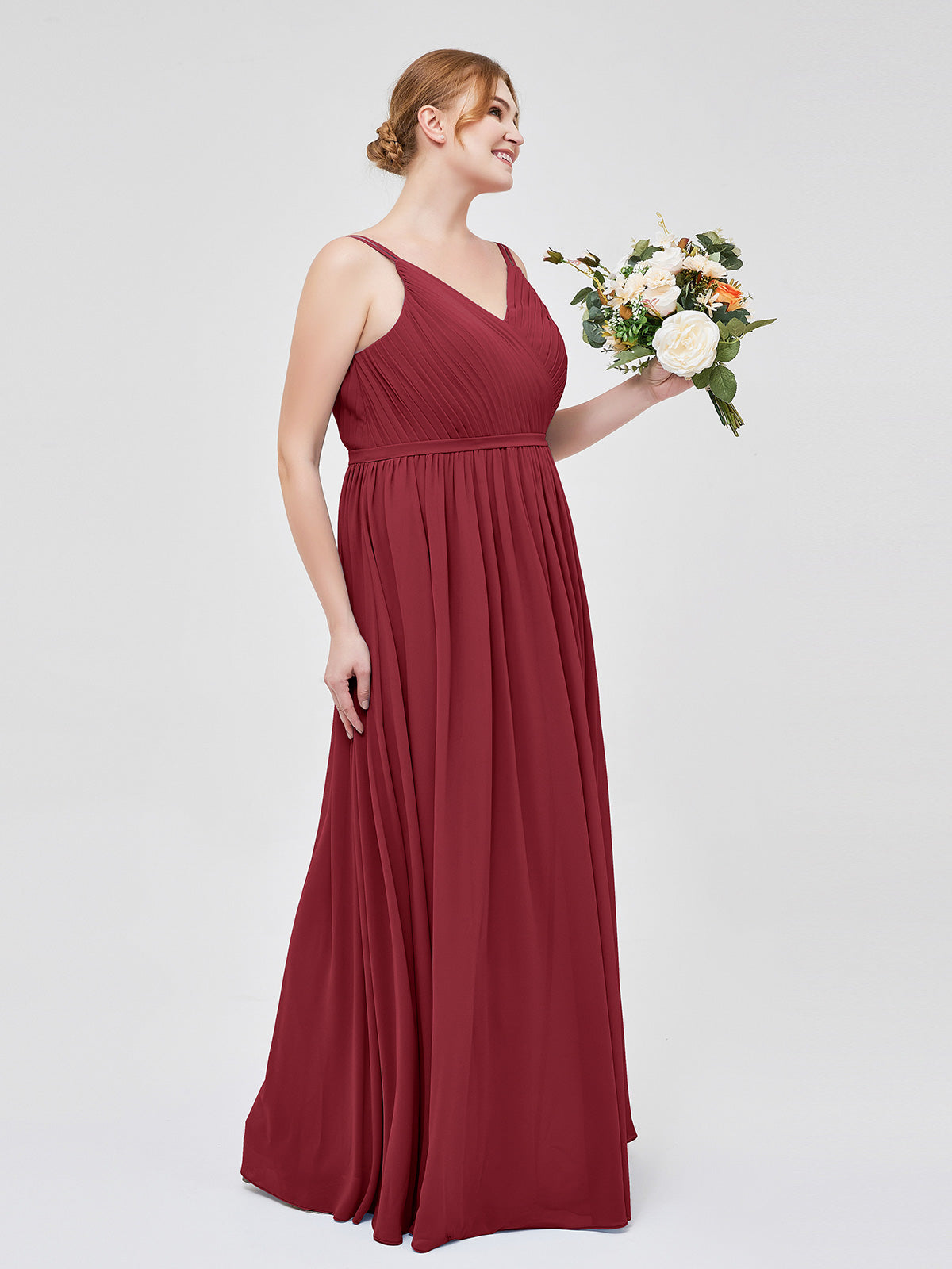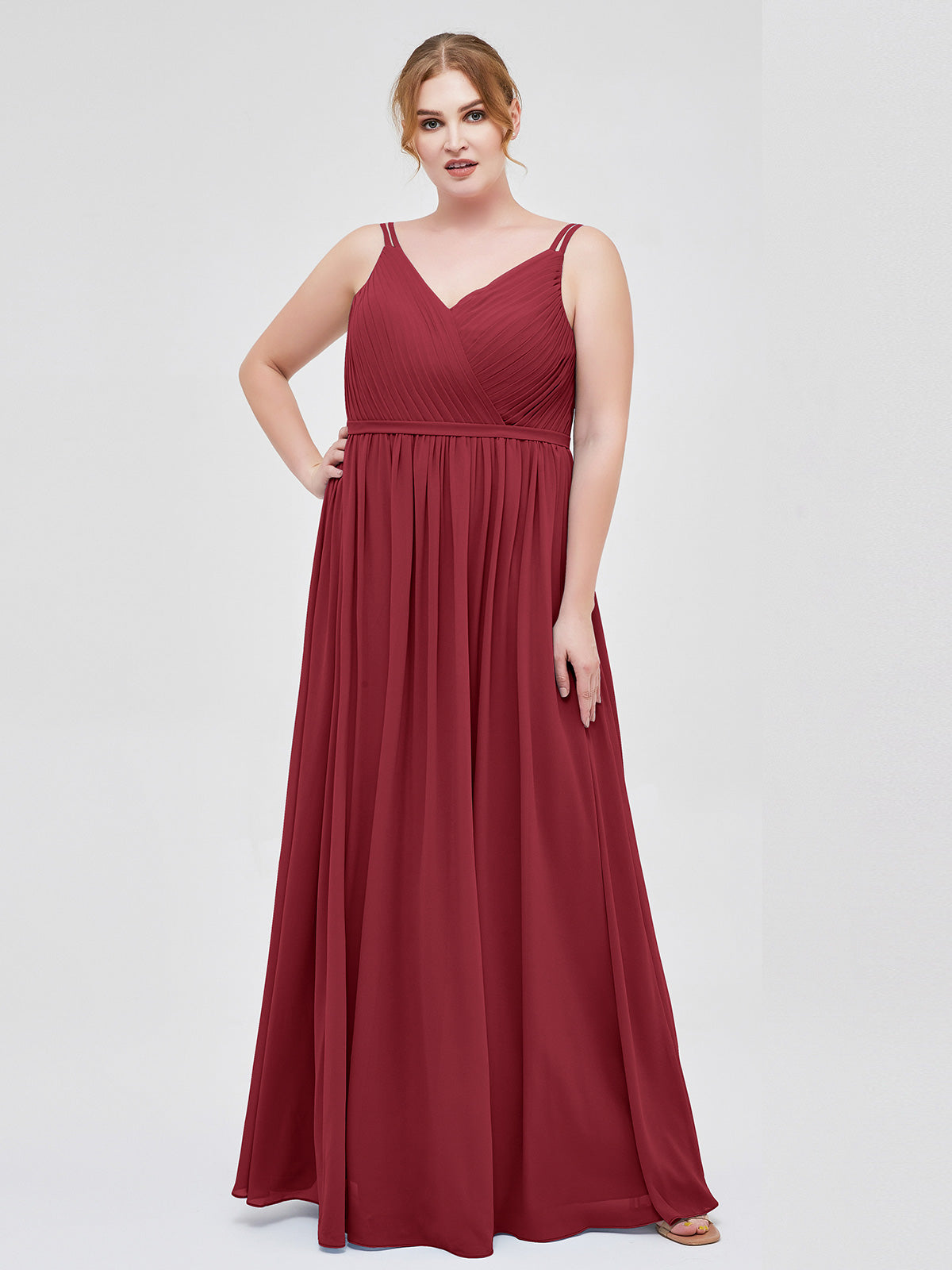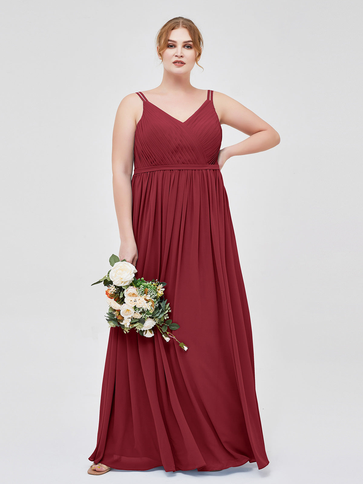 Double Strap Chiffon Bridesmaid Dresses Burgundy