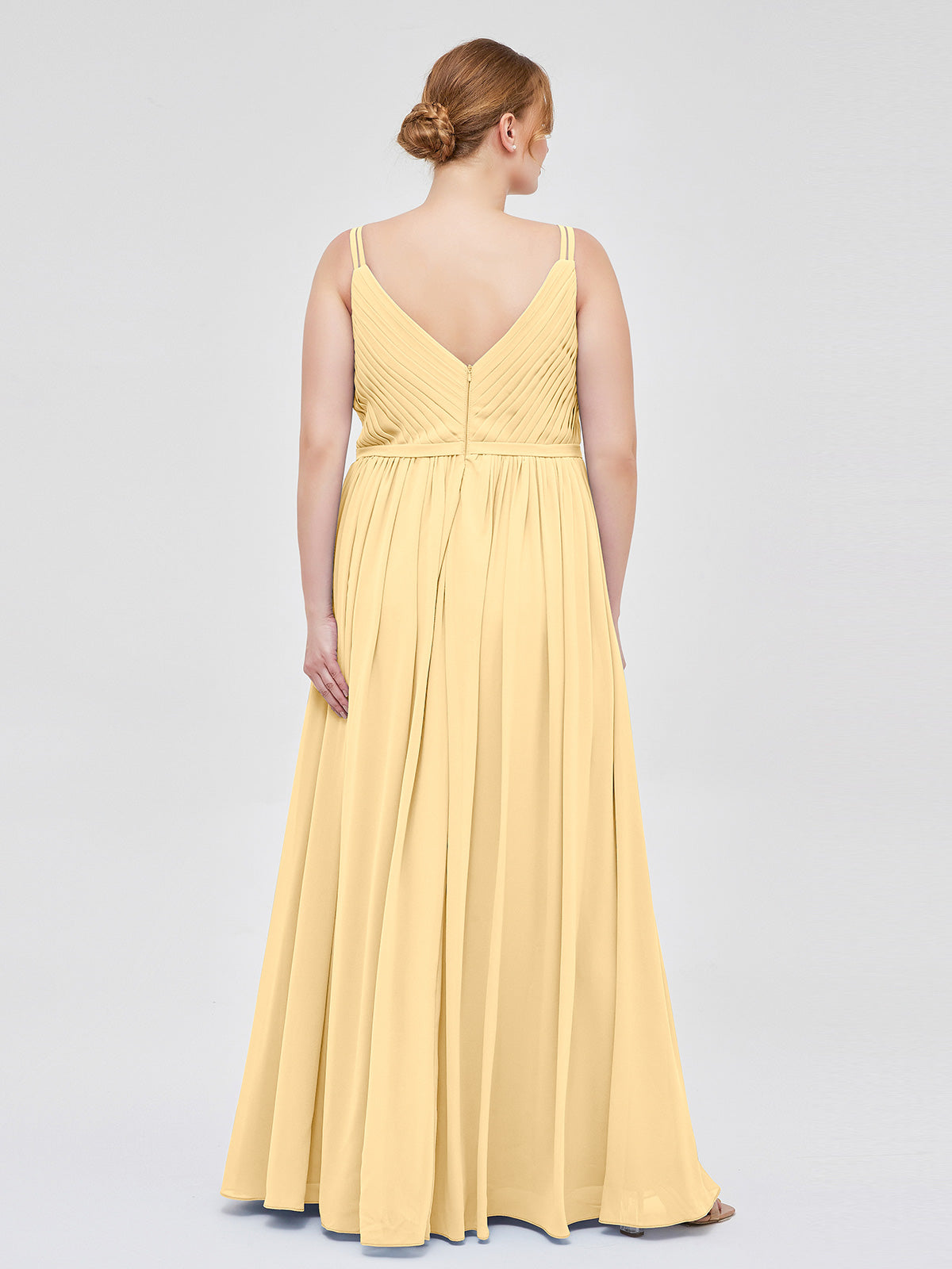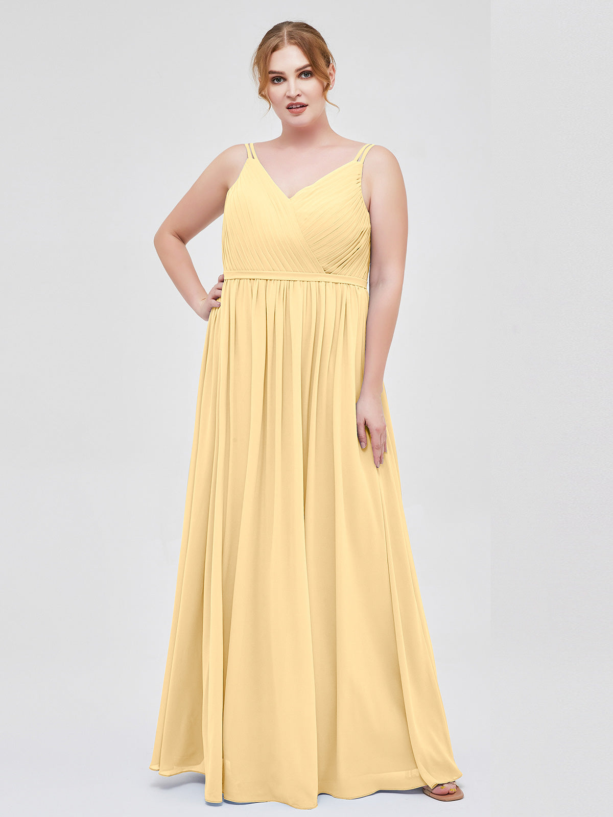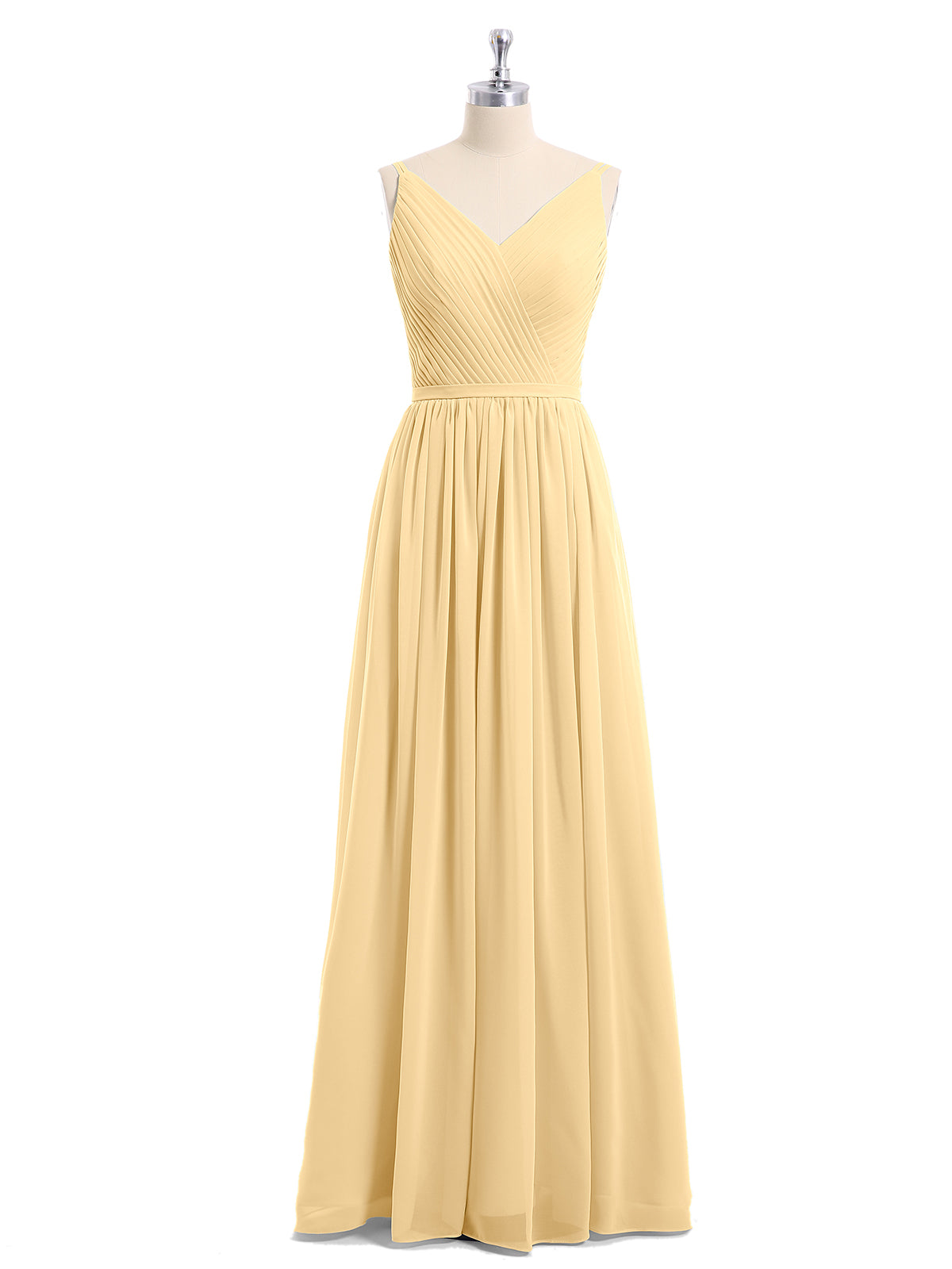 Double Strap Chiffon Bridesmaid Dresses Gold