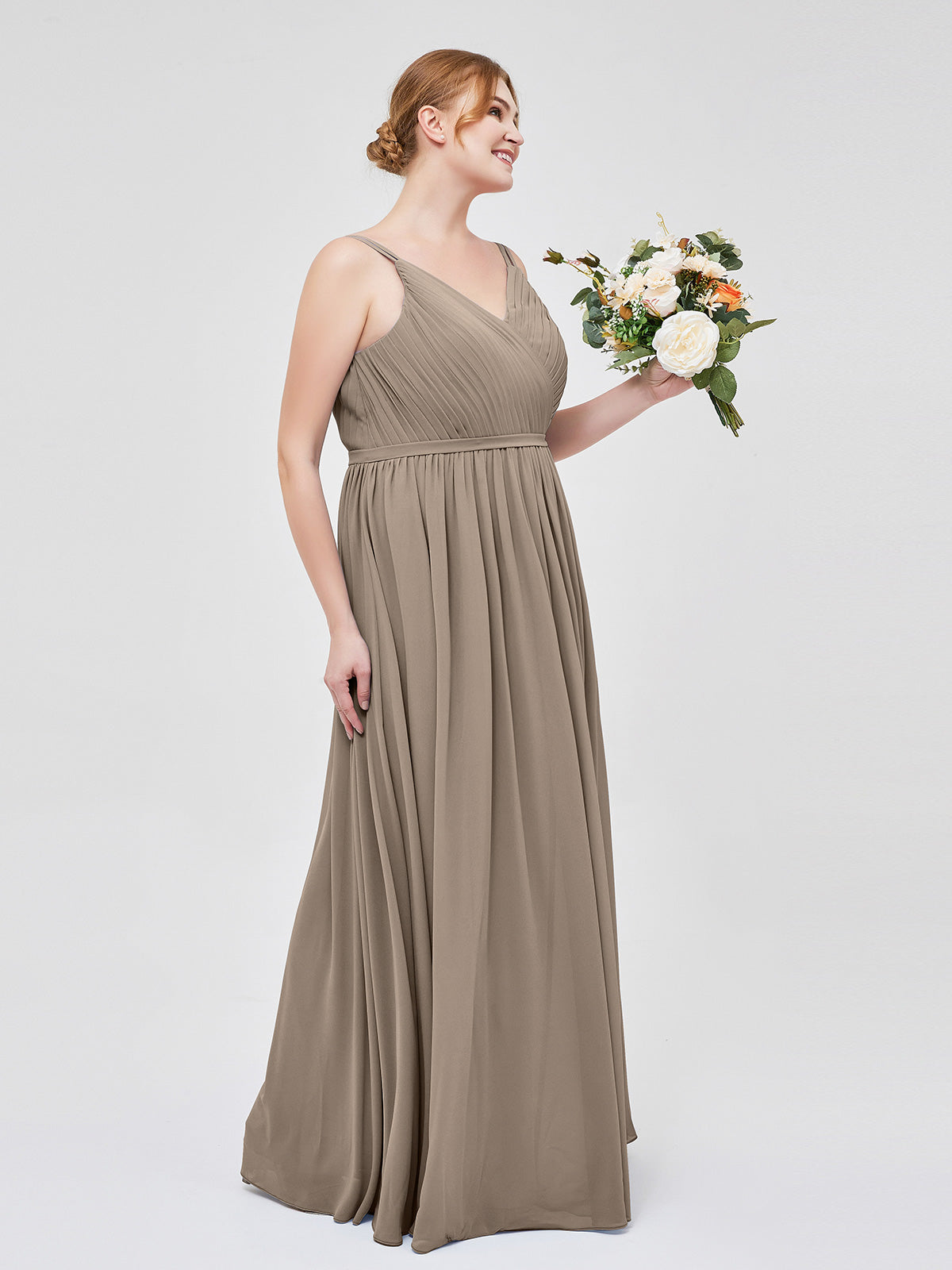 Double Strap Chiffon Bridesmaid Dresses Taupe