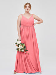 Double Strap Chiffon Bridesmaid Dresses Watermelon