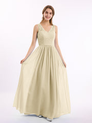Lace Top and Chiffon Bottom Long Dresses Champagne