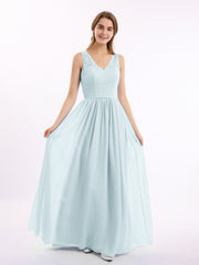 Lace Top and Chiffon Bottom Long Dresses Mist