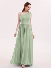 One Shoulder Lace and Chiffon Dresses Dusty Sage