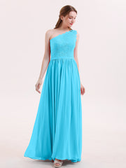 One Shoulder Lace and Chiffon Dresses Pool