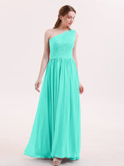 • The lace on the upper body adds an extra flare to the classic one shoulder design, which makes the dress more elegant.