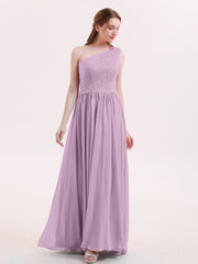 One Shoulder Lace and Chiffon Dresses Wisteria