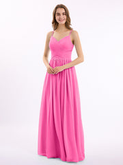 • It is made of chiffon and features spaghetti straps with a pleated bodice.