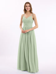 Sweetheart Neck Chiffon Dress with Spaghetti Strap Dusty Sage Plus Size