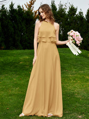 Two Layers Ruffles Bodice Chiffon Dresses Gold