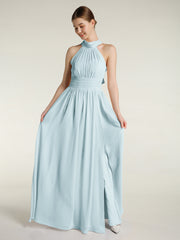 High Neck Full Length Dresses with Slit Mist