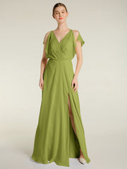V Neckline Chiffon Maxi Dresses with Slit Clover