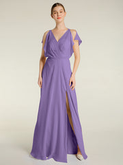 V Neckline Chiffon Maxi Dresses with Slit Tahiti Plus Size
