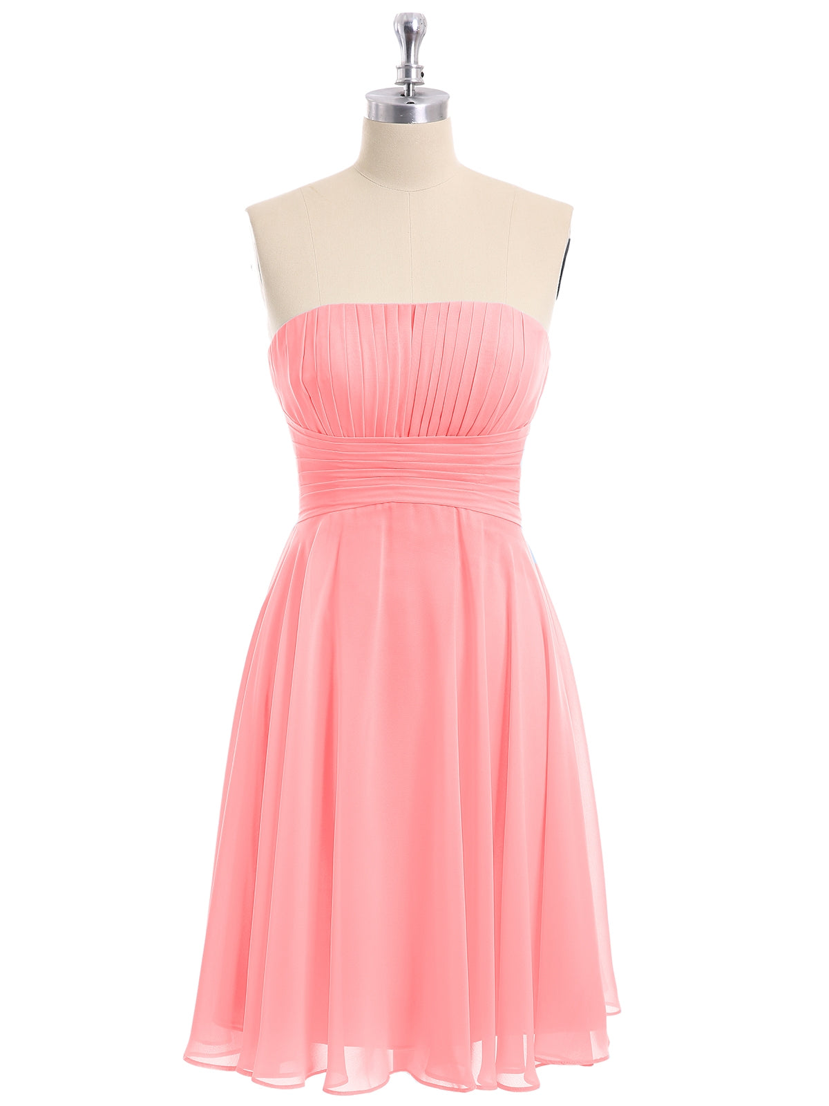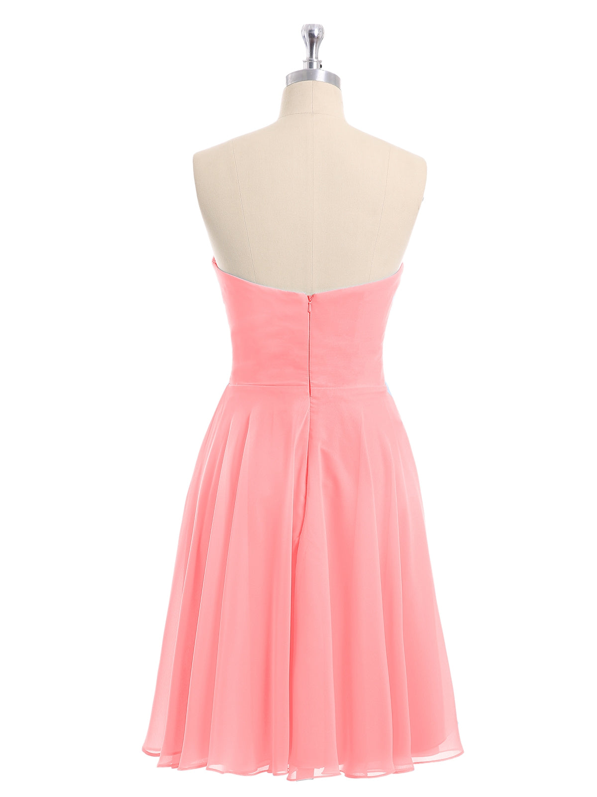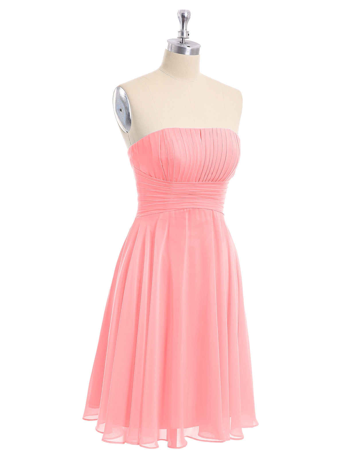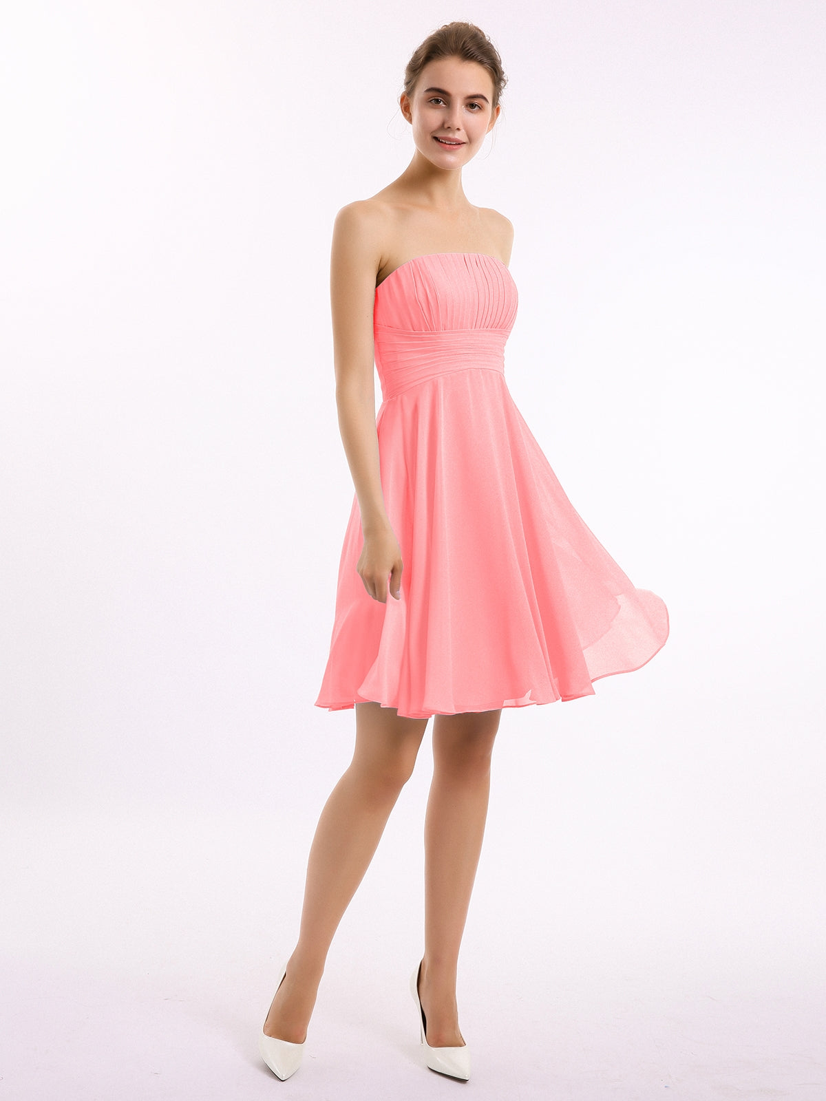 Strapless Chiffon Knee Length Bridesmaid Dress Flamingo