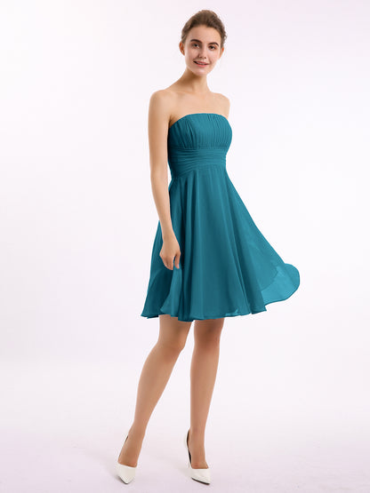 Strapless Chiffon Knee Length Bridesmaid Dress Ink Blue