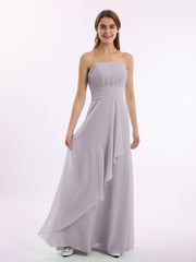 • It is floor-length with an uniquely pleated bodice and a strapless sweetheart neckline.