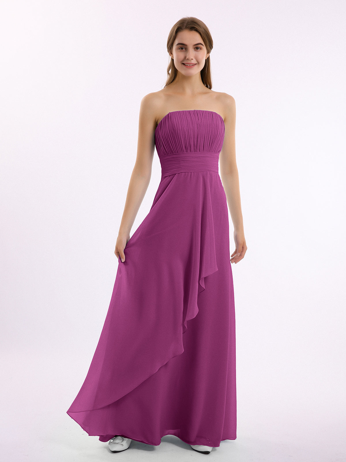 • Brooke is a dazzling bridesmaid dress made of chiffon in an A-line cut.