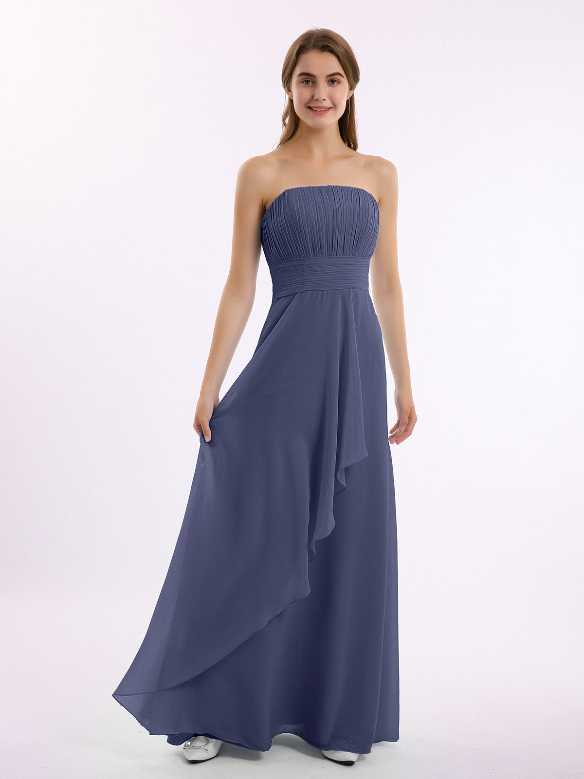 Straight Across Neck Chiffon Bridesmaid Dress Stormy