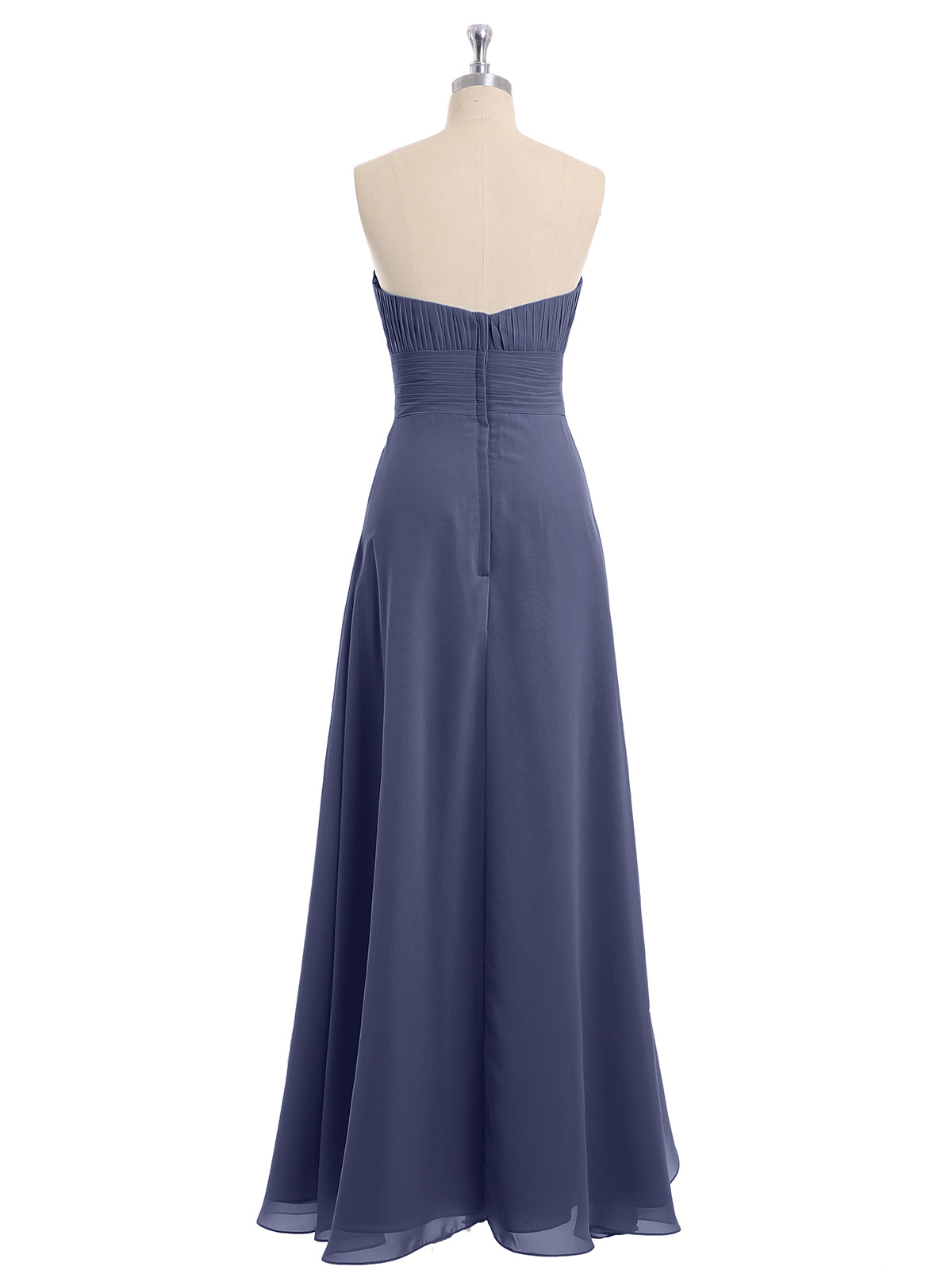 • It is floor-length with an uniquely pleated bodice and a strapless sweetheart neckline.