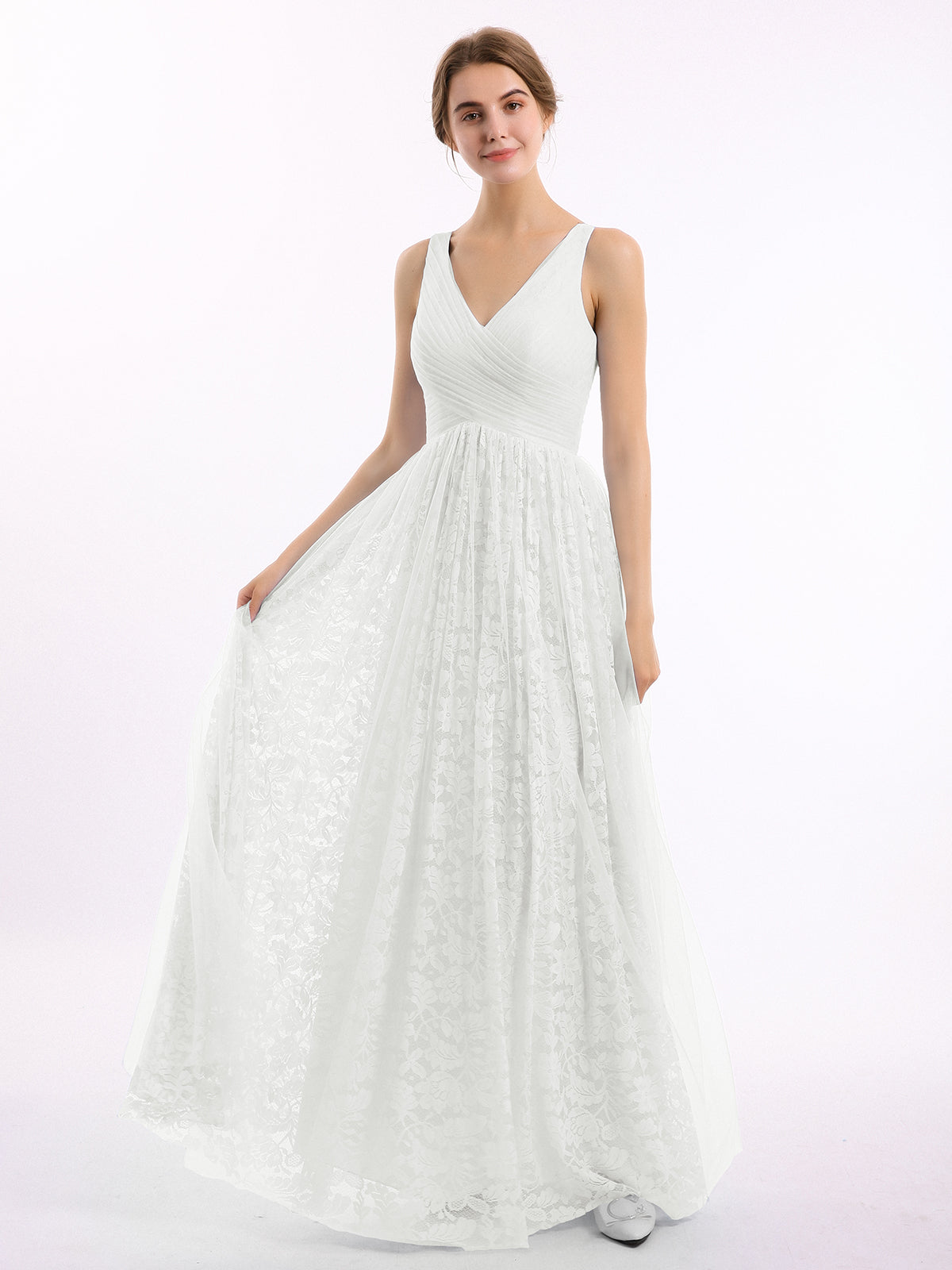 V neck Lace Lining And Tulle Dresses Ivory