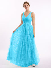 V neck Lace Lining And Tulle Dresses Pool