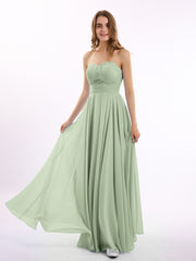 Strapless Chiffon Pleated Bridesmaid Gowns Dusty Sage