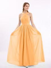 Cross Front Chiffon Long Dress with Bow Tangerine