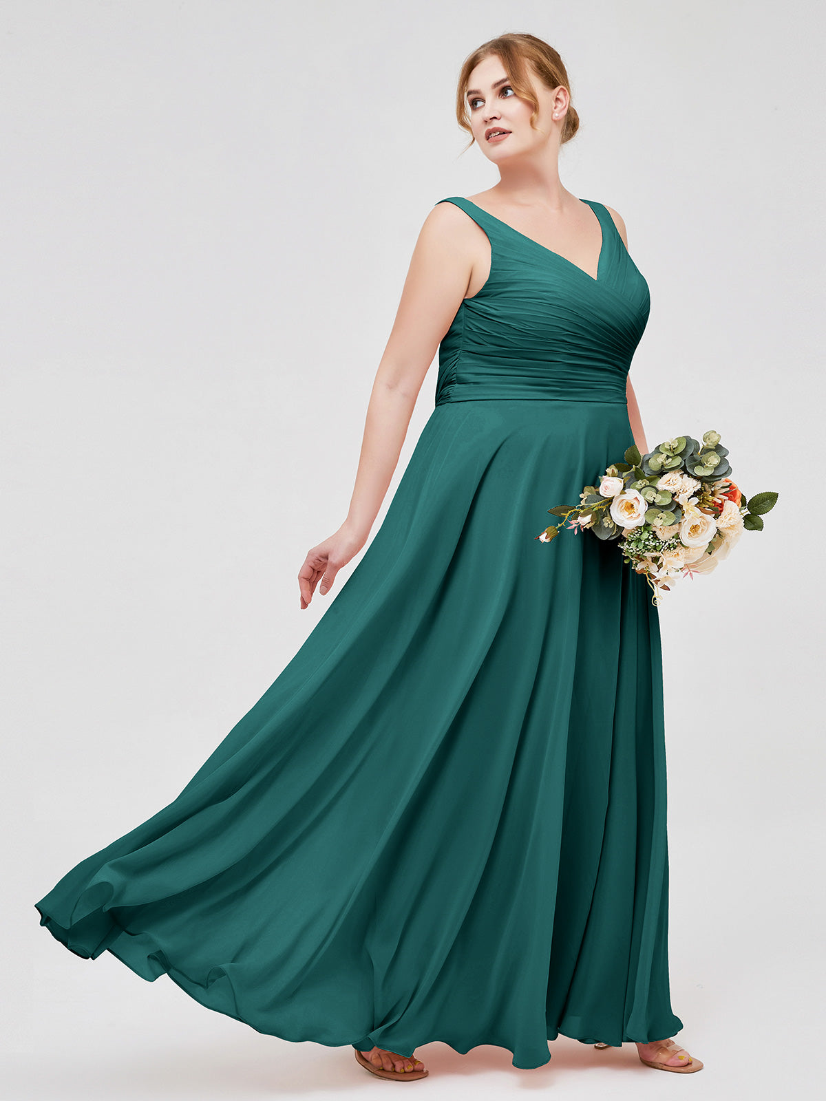 • Cassiopeia's modern crisscross, pleated front bodice combined with its chic illusion v-neckline make the bridesmaids look sexy.