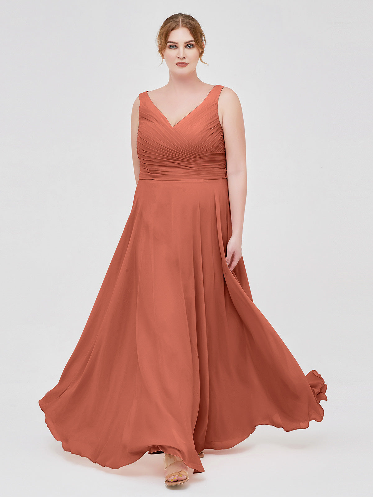 • Cassiopeia's modern crisscross, pleated front bodice combined with its chic illusion v-neckline make the bridesmaids look sexy.