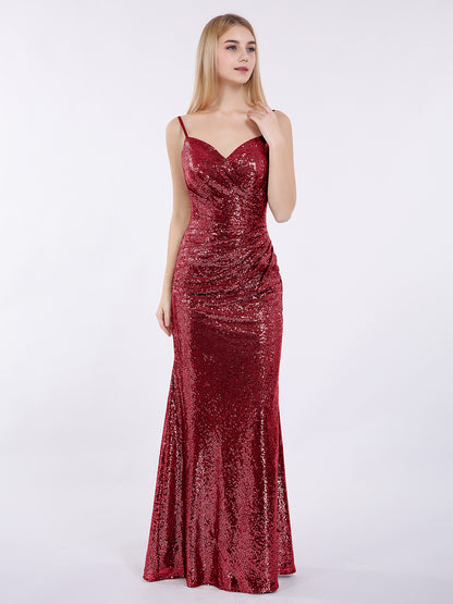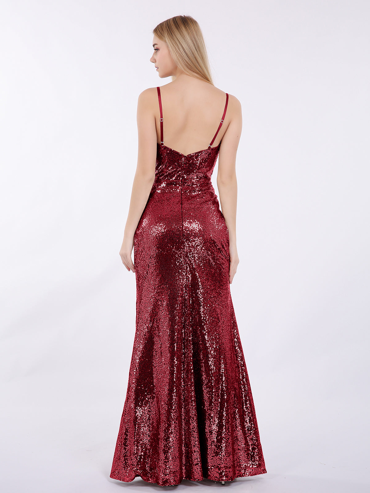 Spaghetti Strap Sequins Gown with Sweetheart Burgundy