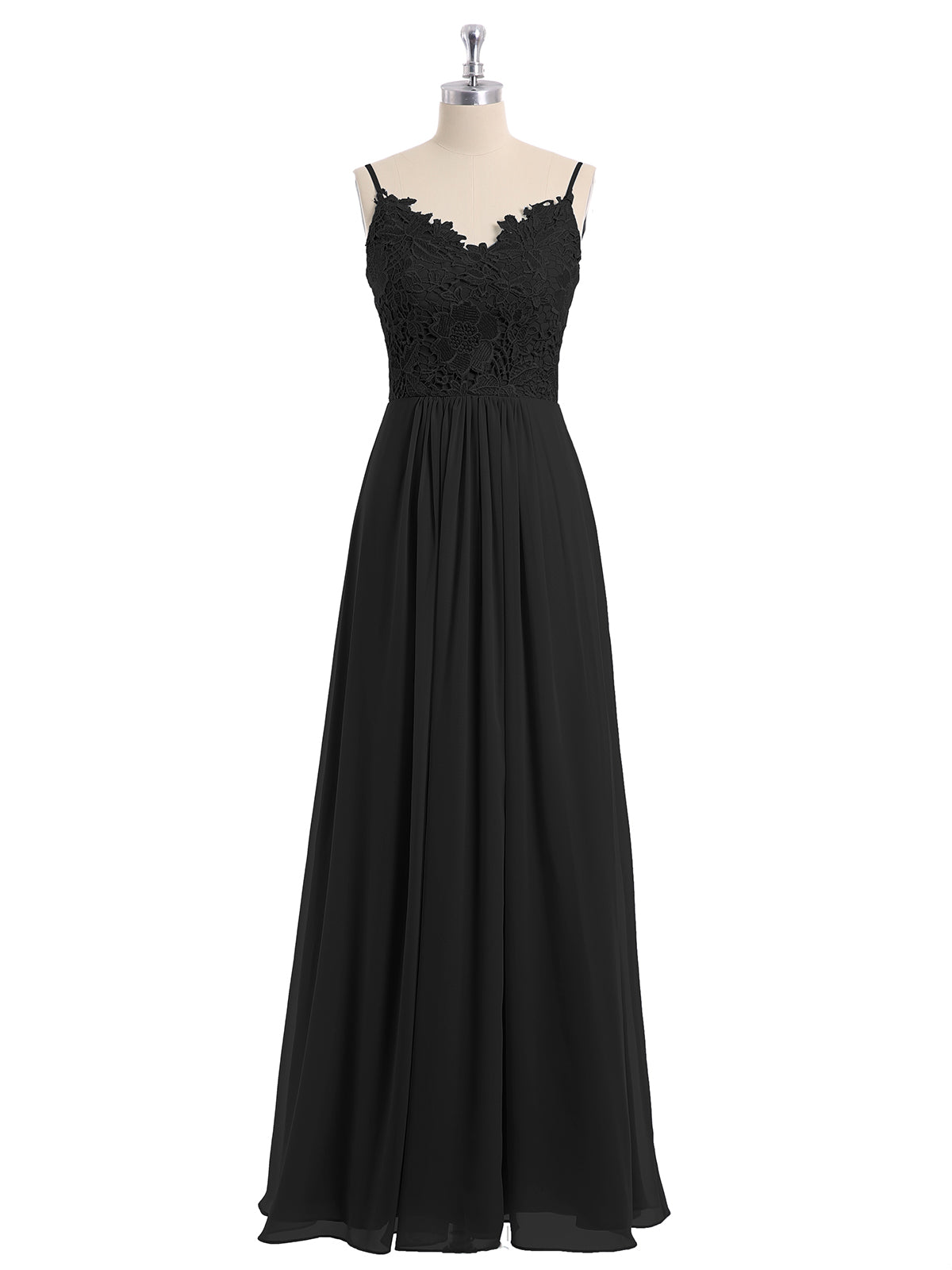 Lace and Chiffon Long Dresses with Spaghetti Straps Black