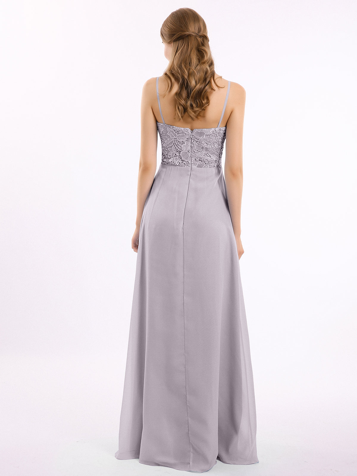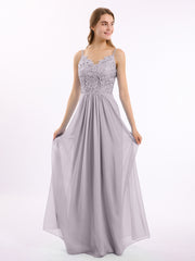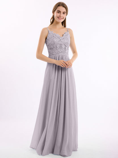 Lace and Chiffon Long Dresses with Spaghetti Straps Dusk