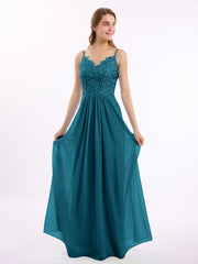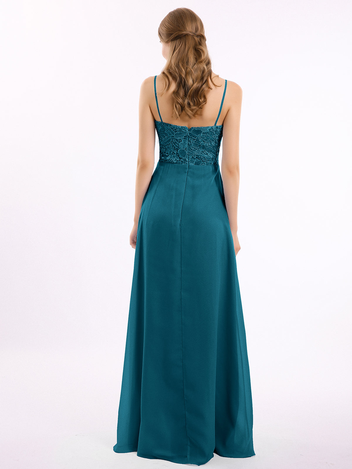 Lace and Chiffon Long Dresses with Spaghetti Straps Ink Blue