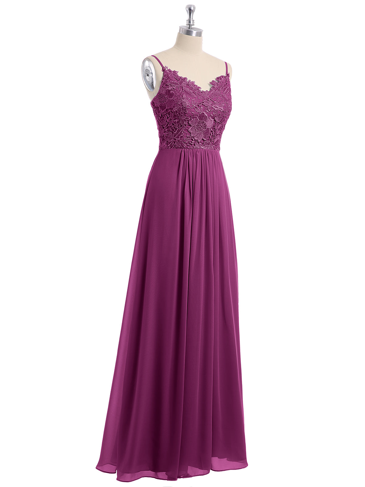 Lace and Chiffon Long Dresses with Spaghetti Straps Orchid