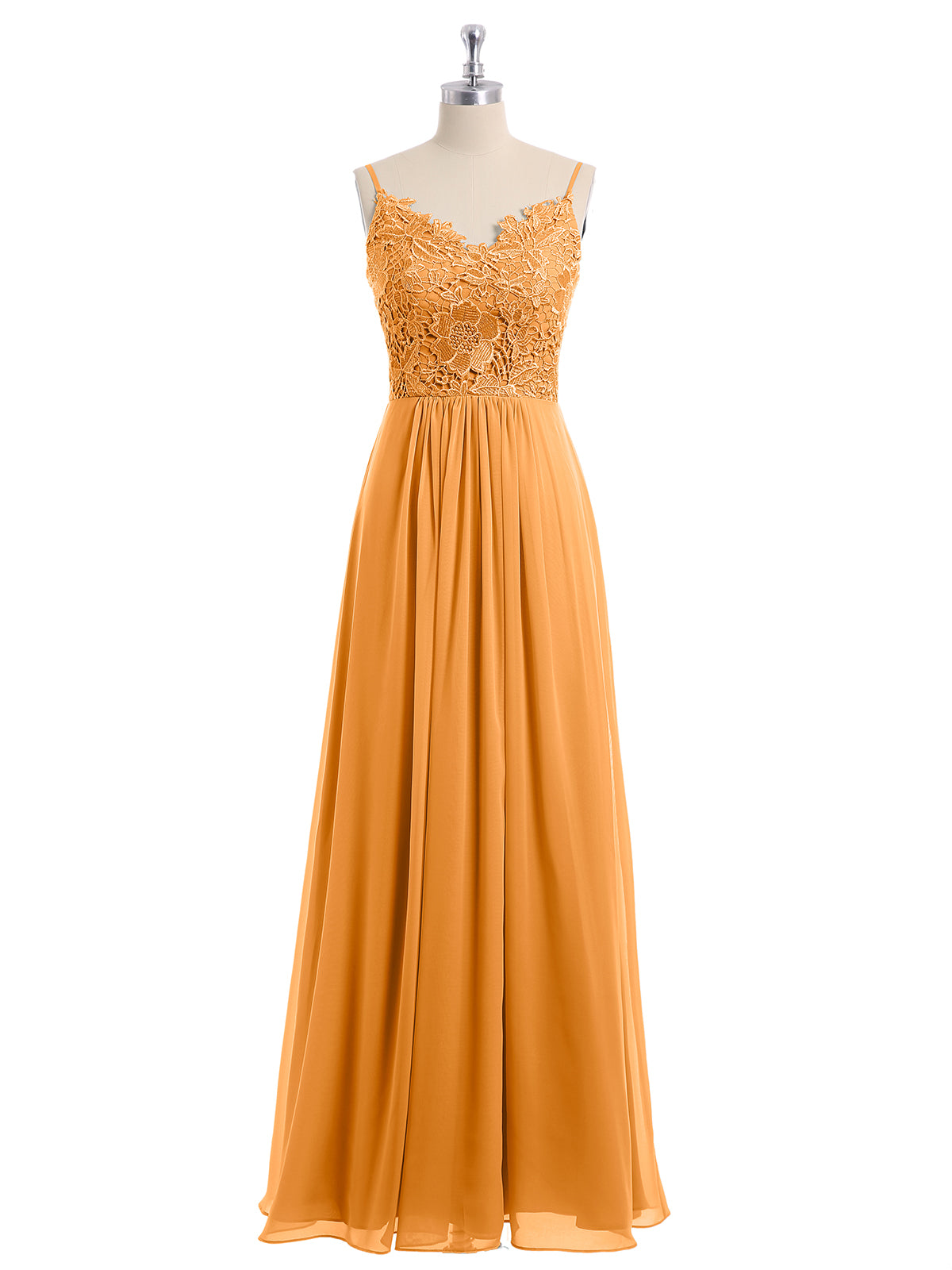 Lace and Chiffon Long Dresses with Spaghetti Straps Tangerine