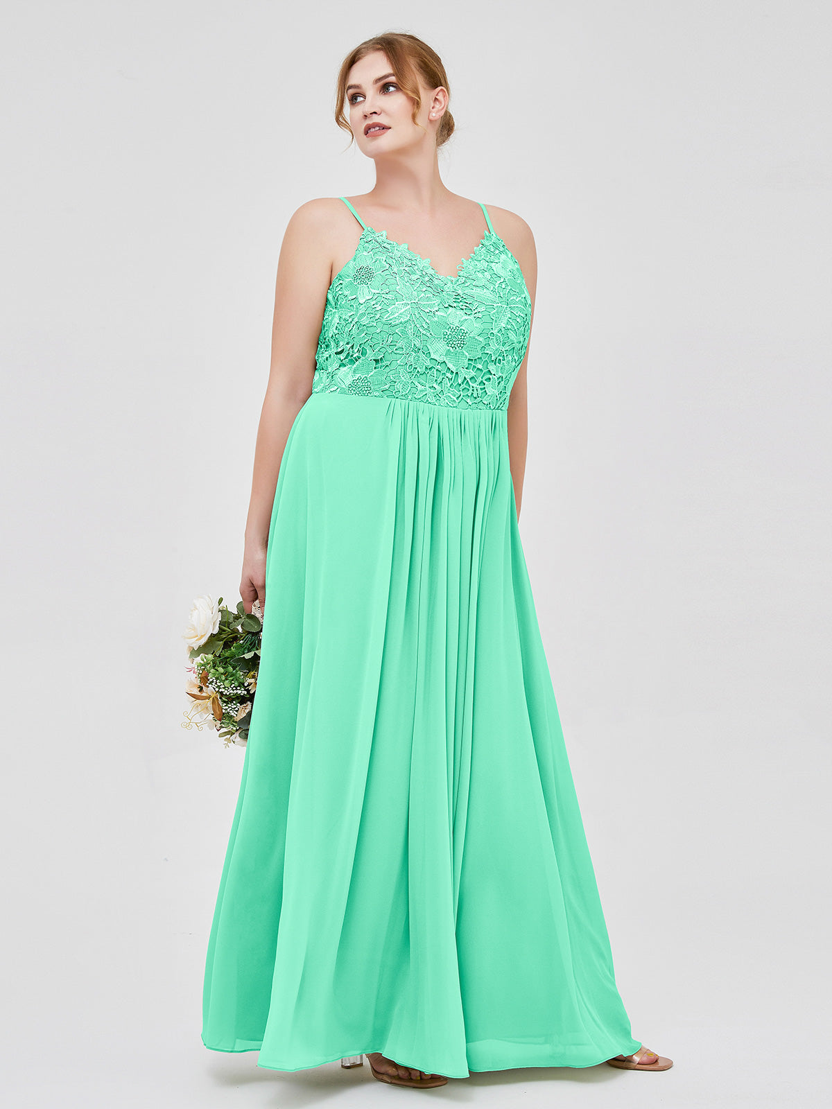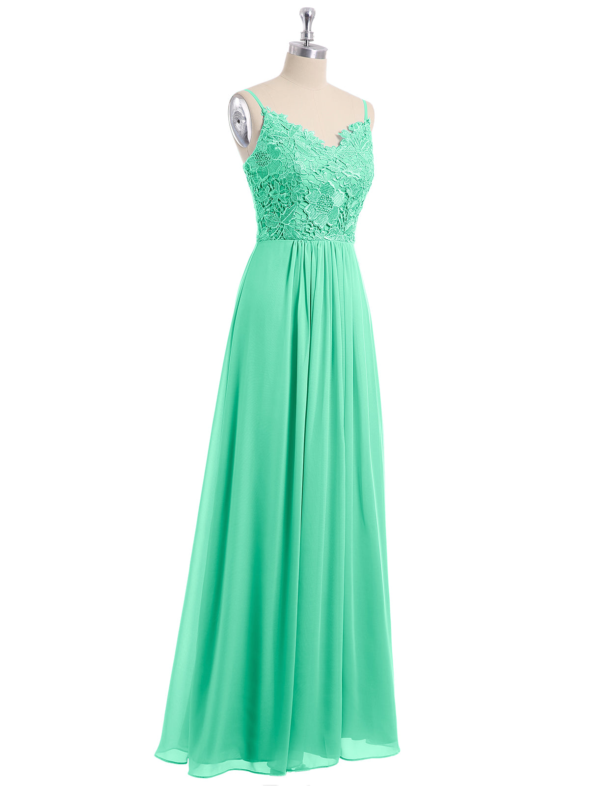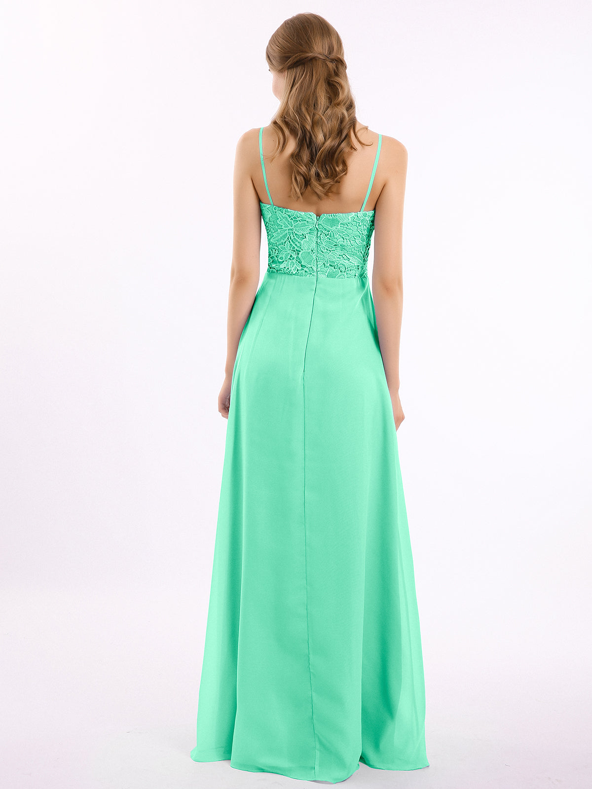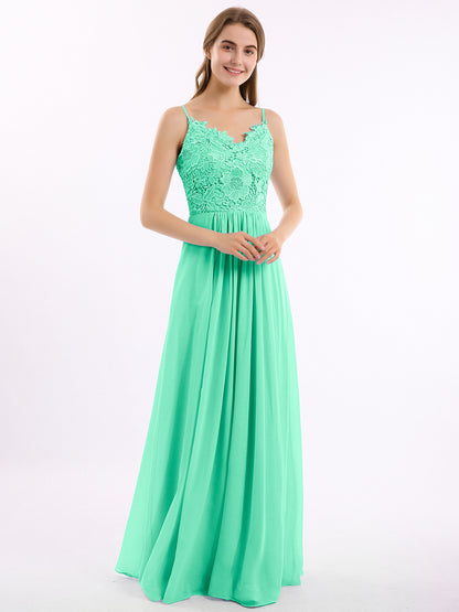 Lace and Chiffon Long Dresses with Spaghetti Straps Turquoise