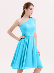 One Shoulder Short Lace Bridesmaid Dress Pool Plus Size